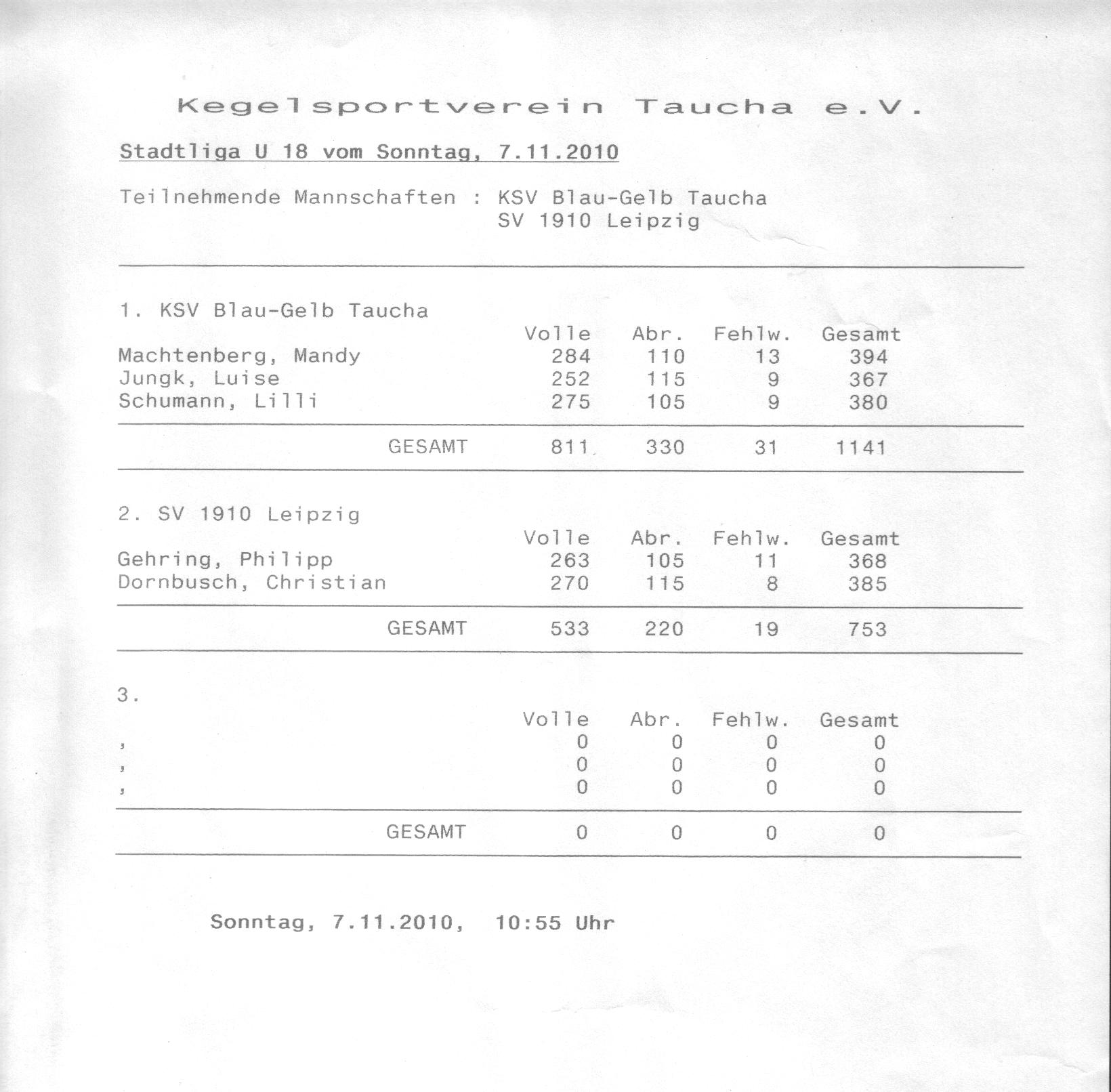 ⇓ 07.11.2010 KSV Blau-Gelb Taucha - SV Leipzig 19101448 : 1465