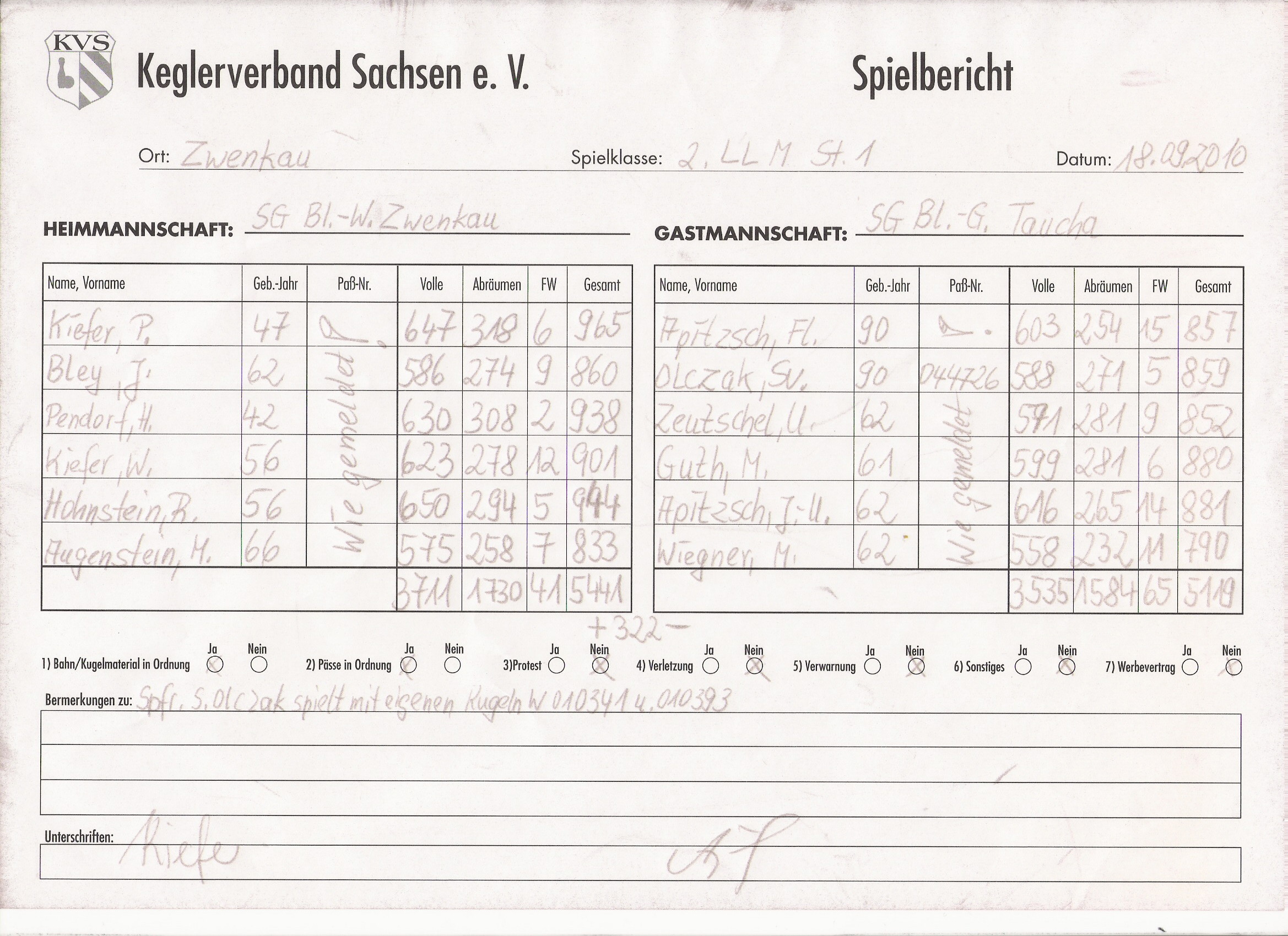 ⇓ 18.09.2010 SG B-W Zwenkau - KSV Blau-Gelb Taucha5441 : 5119