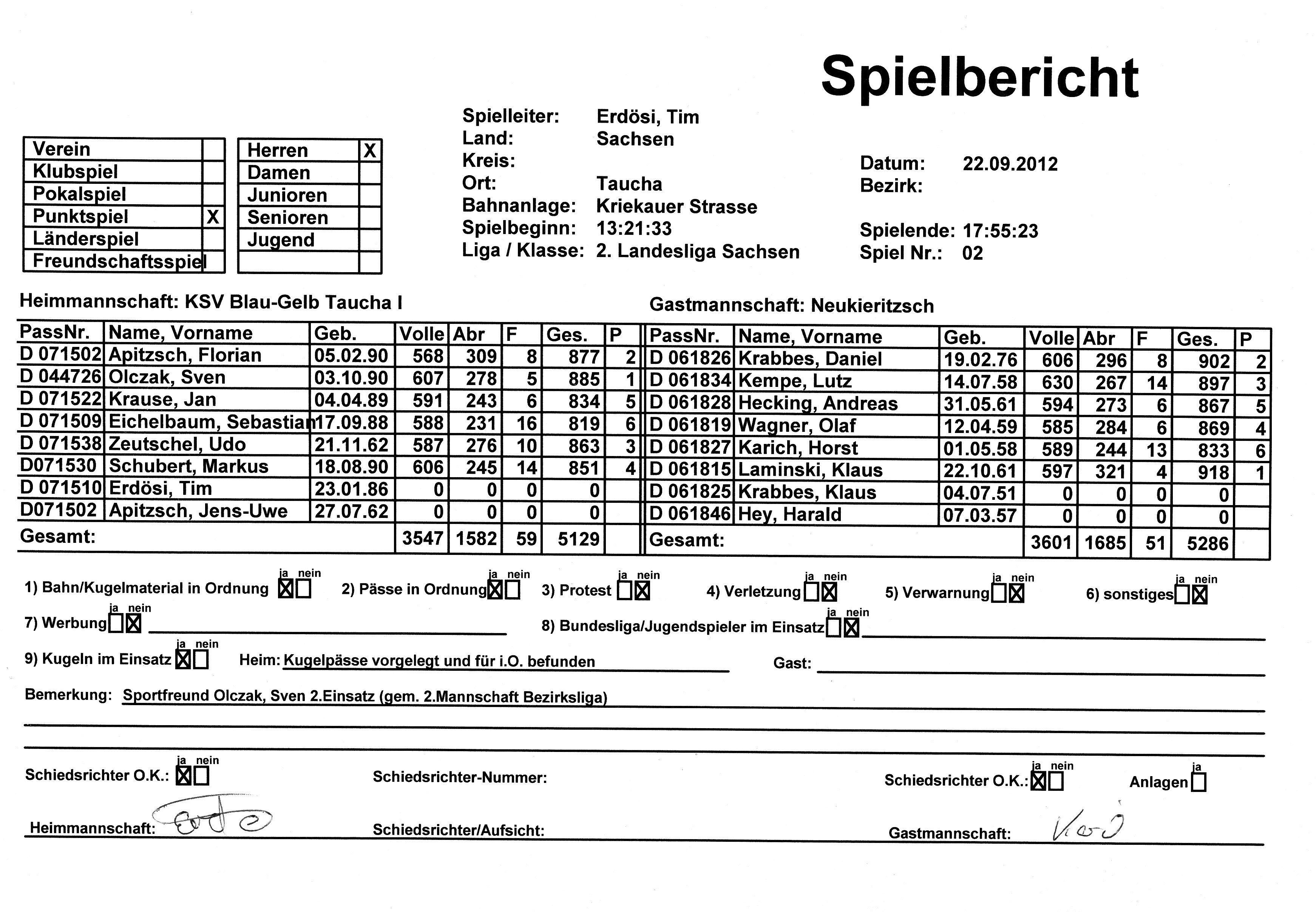 ⇓ 22.09.2012 KSV Blau-Gelb Taucha - Spfr. Neukieritzsch5129 : 5286