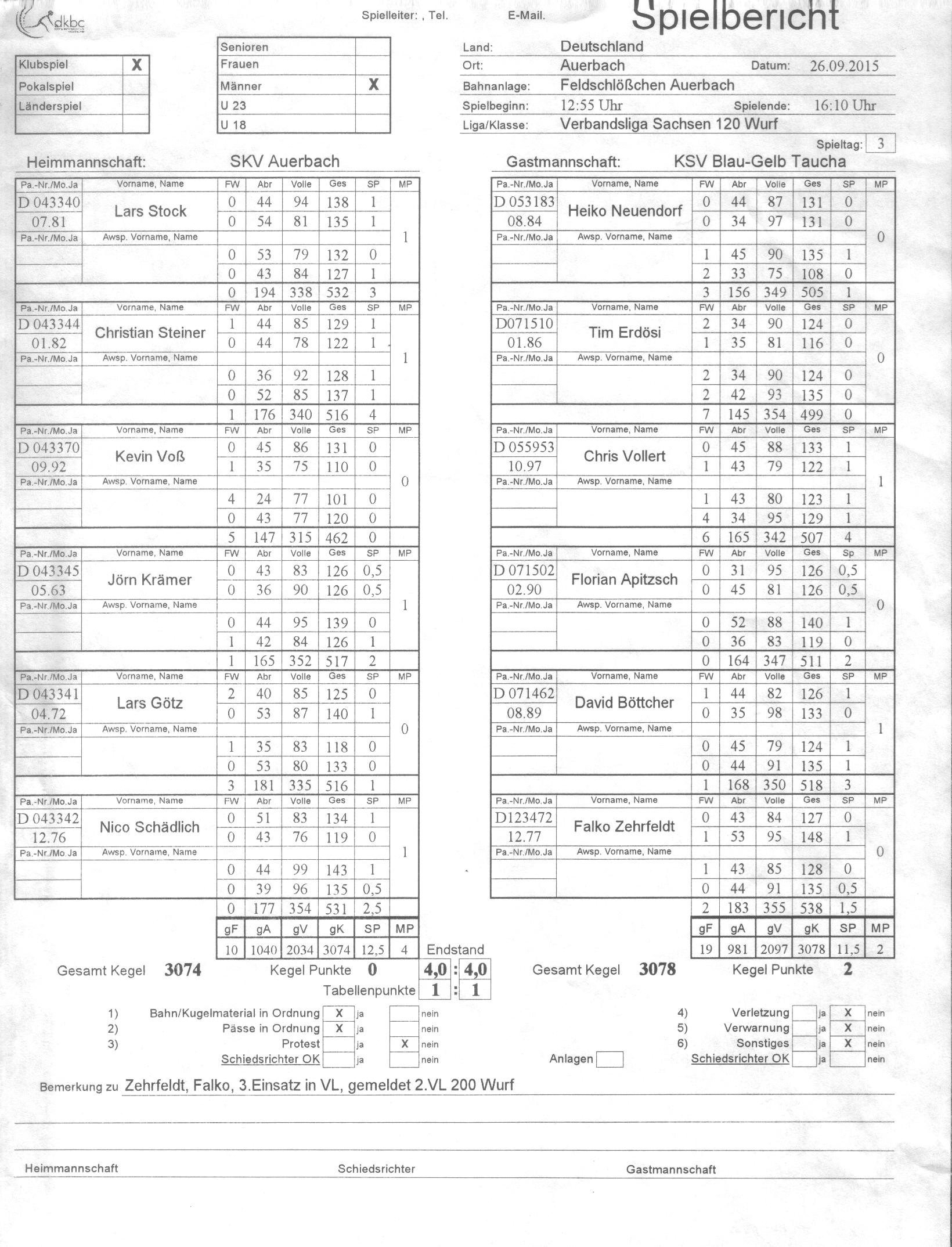 ⇓ 26.09.2015 SKV Auerbach : KSV B-G Taucha3078 : 3074 4,0 : 4,0