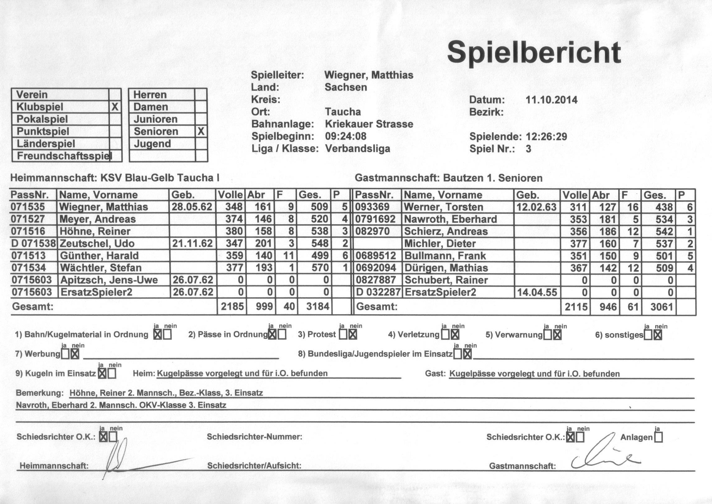 ⇓ 11.10.2014 KSV Blau-Gelb Taucha : KV Bautzen West3184 : 3061