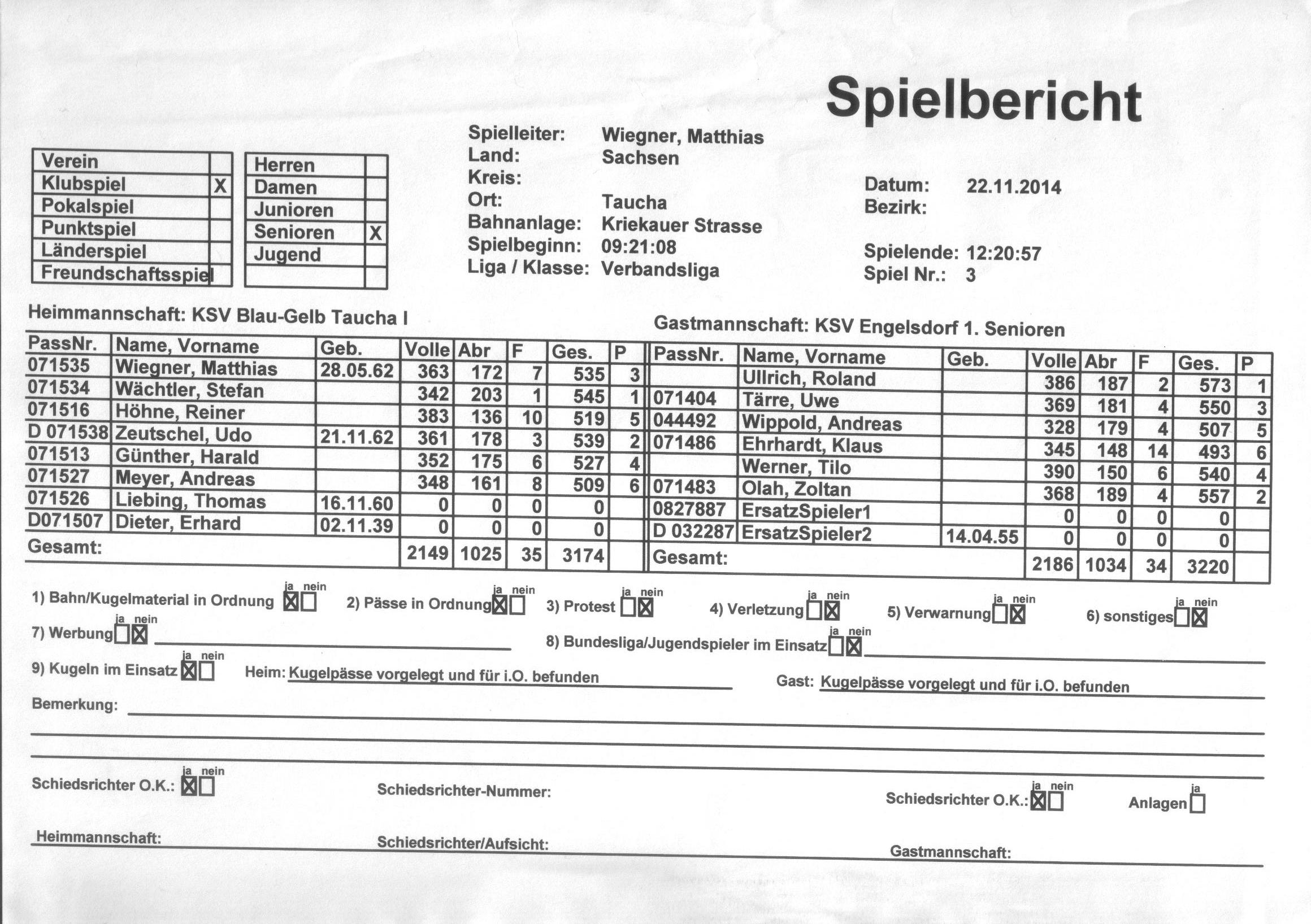⇓ 22.11.2014 KSV Blau-Gelb Taucha : KSV Engelsdorf3174 : 3220